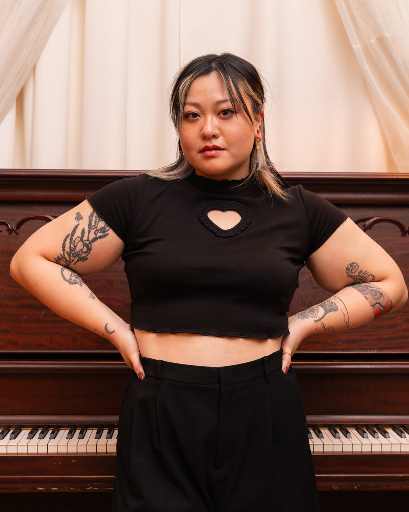 With our hearts ever-so-slightly to the left of center of our chests, may this center-front heart-shaped cut-out make cupid's arrow never strike true. 💘