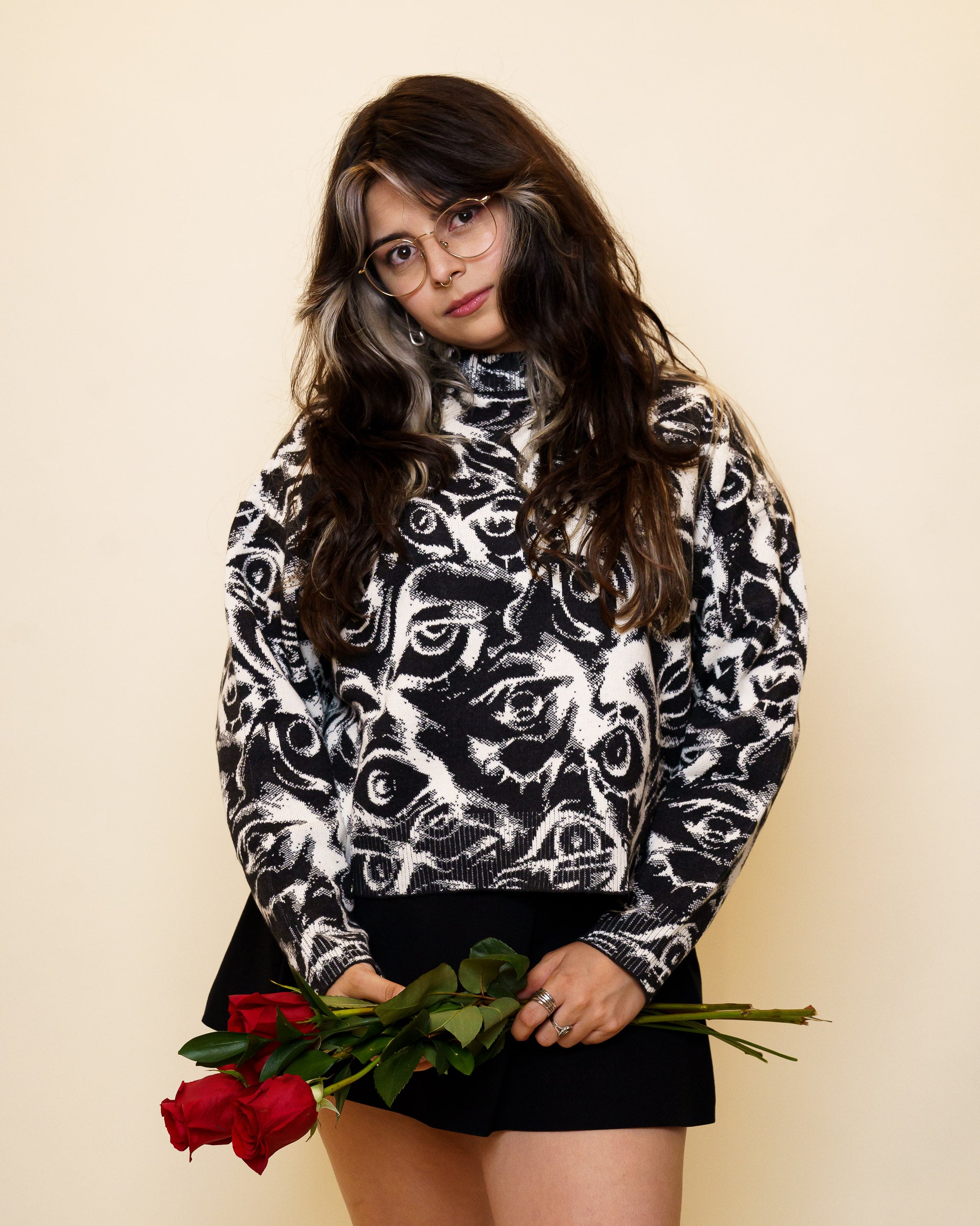 Knit design; no printing or embroidery, design is fully integrated using white and black yarn