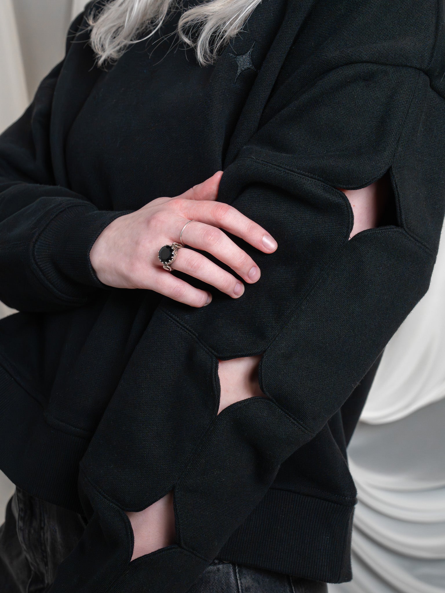 Three, four pointed star cutouts per sleeve.